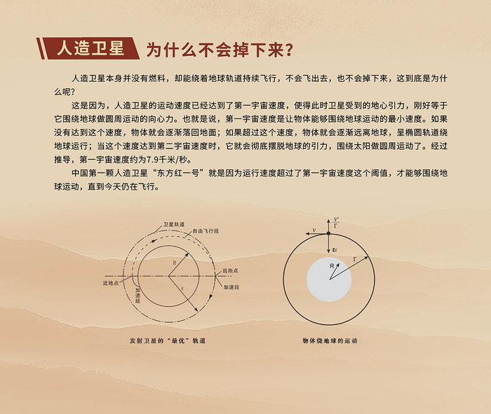 中国第一颗人造卫星“东方红一号”就是因为运行速度超过了第一宇宙速度这个阈值,才能够围绕地球运动,直到今天仍在飞行。