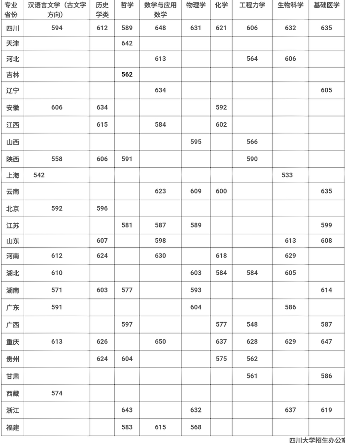 ○ @高考生 四川大学强基计划校测入围分数公布
