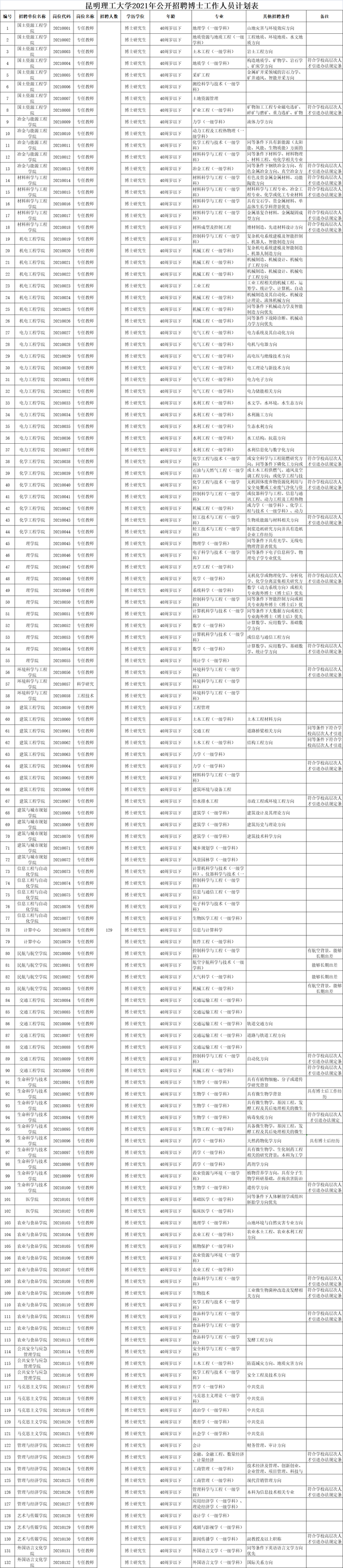 昆明理工大学2021年公开招聘硕士及其他学历工作人员公告(二)