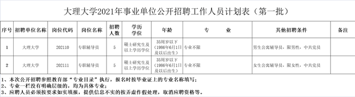 云南省教育厅直属事业单位大理大学2021年拟面向社会公开招聘事业编制专职辅导员10名。