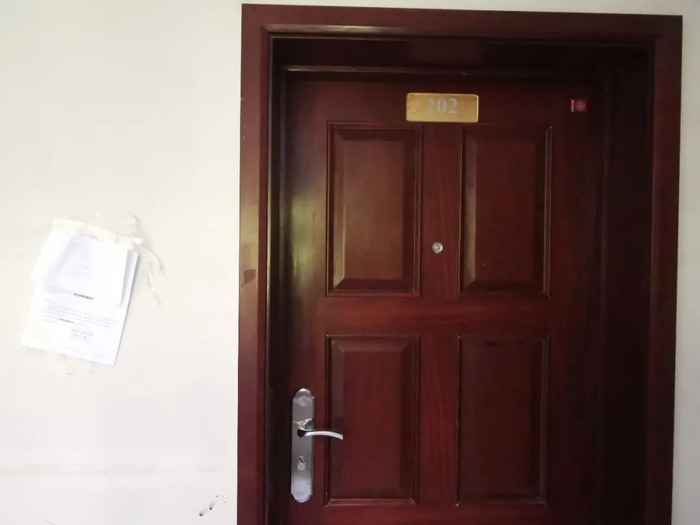 202室仍使用着2011年开发商交付的防火入户门,这扇门异常沉重,据说门内灌装了水泥砂浆。