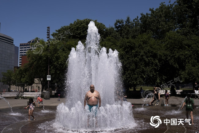 ▲当地时间2021年6月27日,美国俄勒冈州波特兰市通报了破纪录的43℃高温,市民在喷泉中消暑。(图片作者:人民视觉)这样的高温并非正常。
