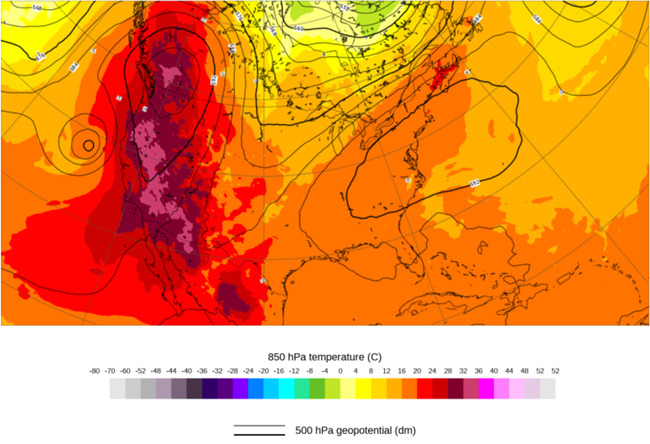 与此同时,在北太平洋的副热带高压的北缘演化而来的夏威夷高压趁势向北扩展,直接覆盖北美西部,在副热带高压控制下,盛行下沉气流,天气晴朗炎热。因此导致了此次罕见高温天气的出现。