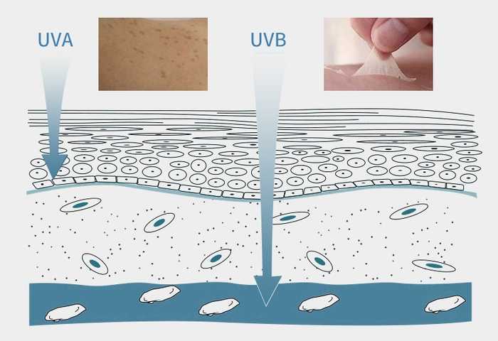 UVB:损害真皮层,穿透力强,肌肤晒红、脱皮、晒伤