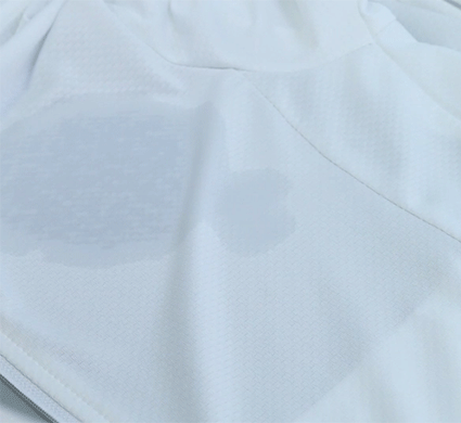 除了拥有优秀的透气性,面料还具有出色的导水快干特性。10s就可以把汗水绕入组织物表面,让衣服时刻保持干燥。