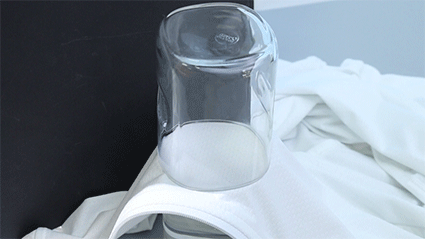我把衣服放在装满热水的杯子上,热汽几乎没有被阻挡,就这点,就可以秒杀市面上绝大多数的防晒衣了。