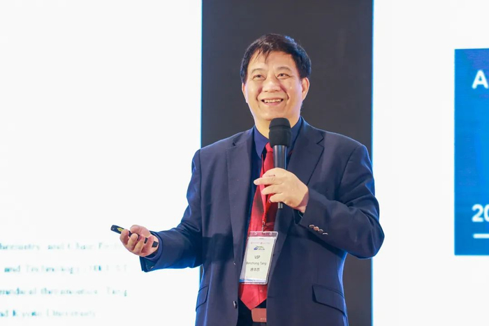 唐本忠院士在学术论坛上演讲。(资料照片)