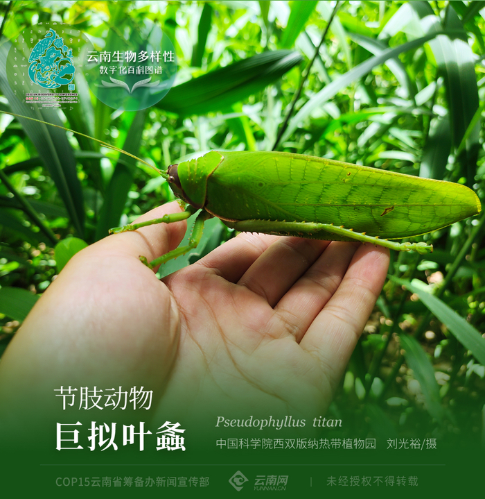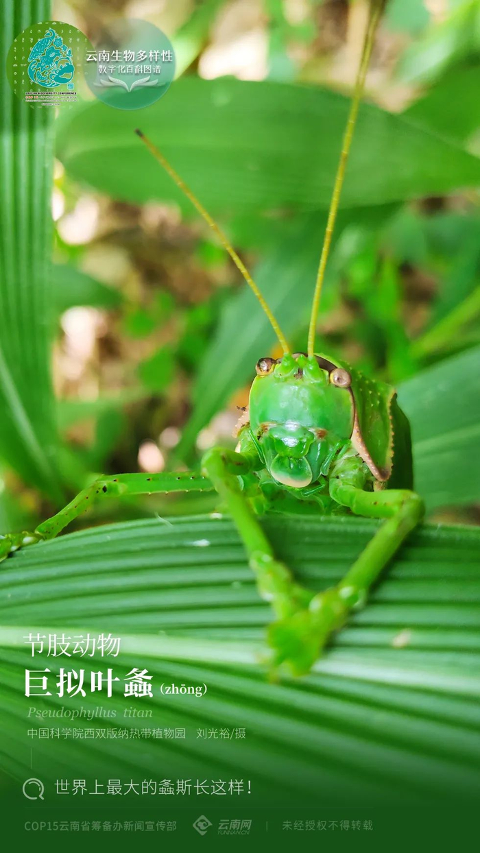 原标题:【云南生物多样性数字化百科图谱】节肢动物·巨拟叶螽:世界上最大的螽斯长这样!