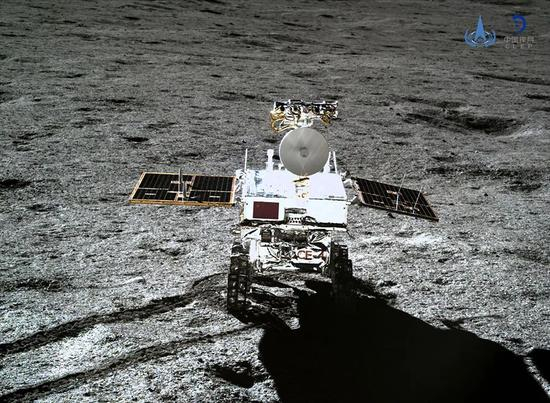 ▲嫦娥四号着陆器地形地貌相机对玉兔二号巡视器成像