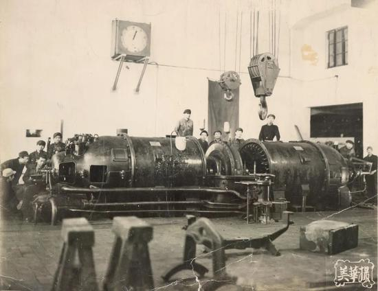 ▲解放战争时期佳木斯发电厂的汽轮发电机组