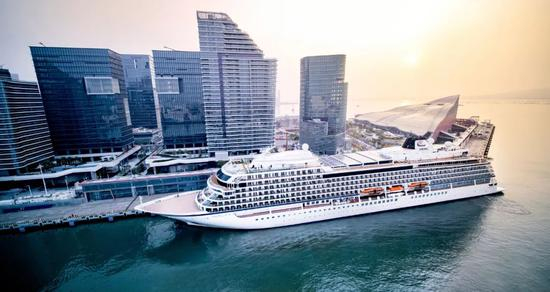 ▲如今的蛇口,停靠在蛇口邮轮母港的中国第一艘悬挂五星红旗邮轮“招商伊敦号”