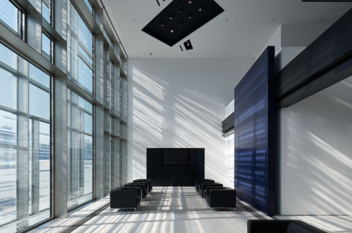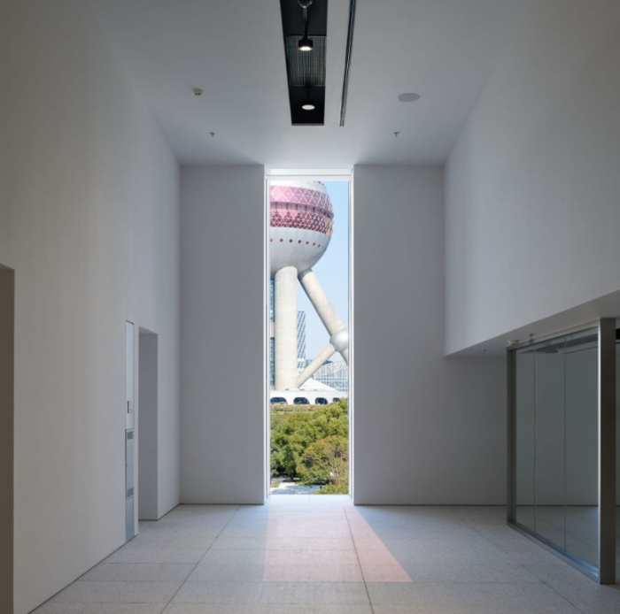 在让·努维尔为世界各地设计的建筑中,光是其重要的造型要素,浦东美术馆概莫能外。天光云影共徘徊,在浦东美术馆面向黄浦江主立面的二层和三层空间,是两个深5米、宽55米、净高分别为5米和10米的空间。