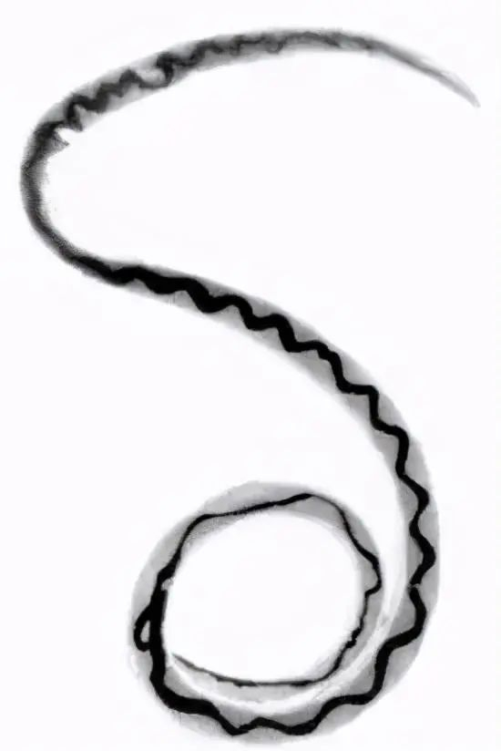 广州管圆线虫(又叫广东住血线虫)图片:John F. Lindo / wikimedia