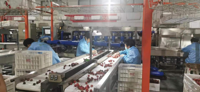 山东乐浓农业发展有限公司的加工厂里,杨帆望着晶莹剔透的烟台大樱桃一批又一批经过分拣台,非常欣慰。他是山东乐浓农业发展有限公司的负责人,已从事8年的樱桃电商销售工作。
