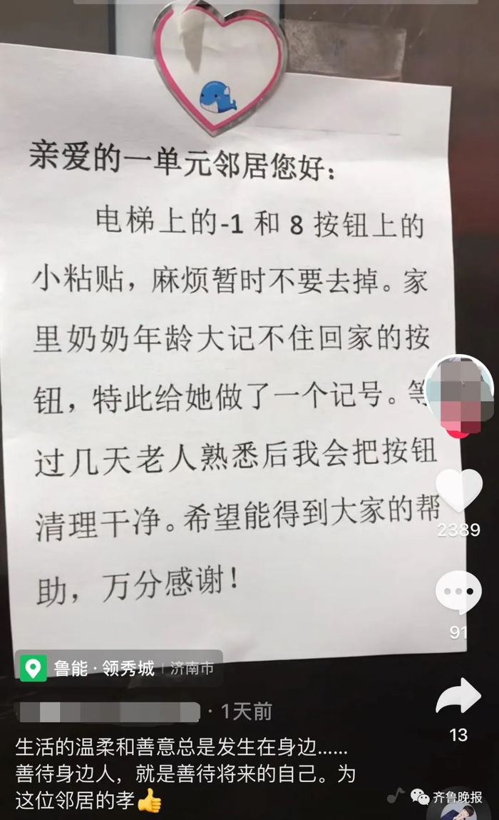 社会 | 小区电梯按键被贴“奇怪”贴纸?网友却说:留着吧,挺好