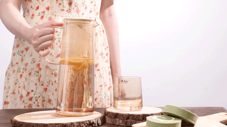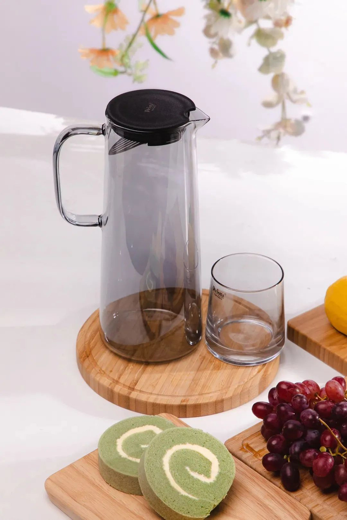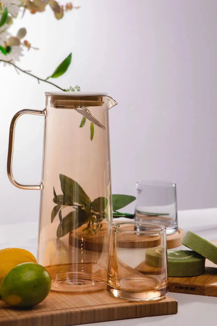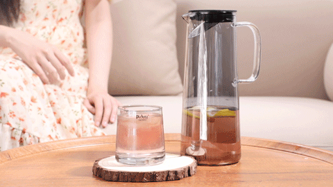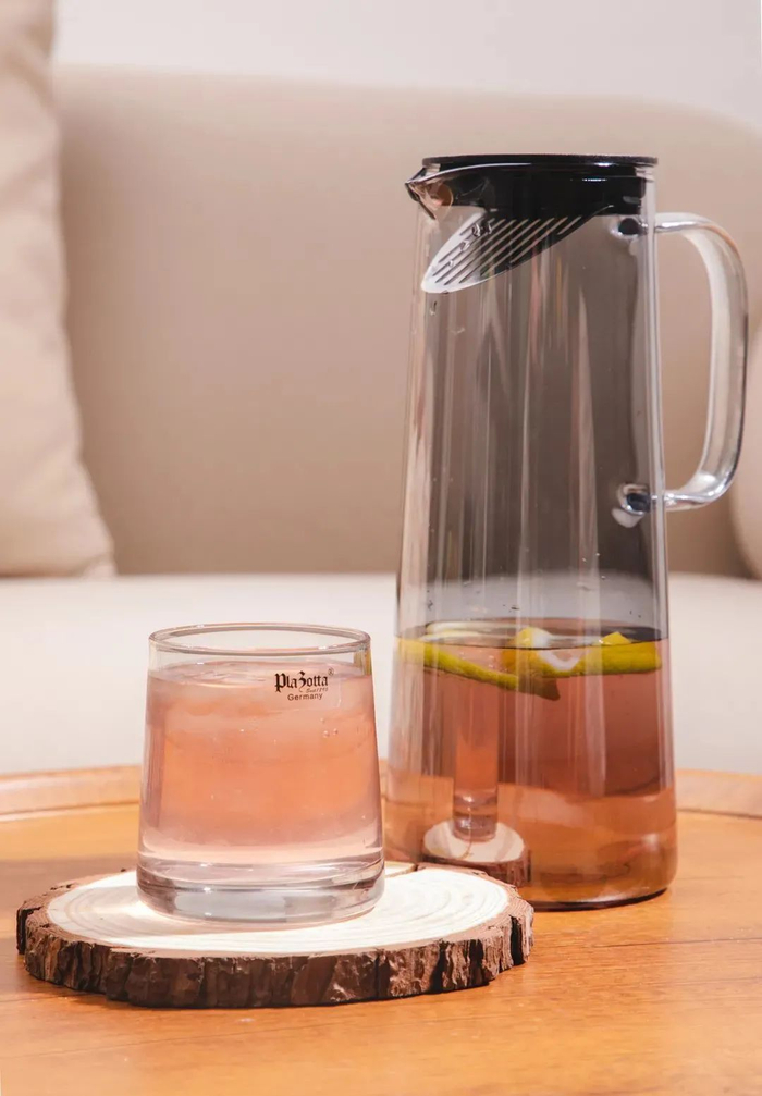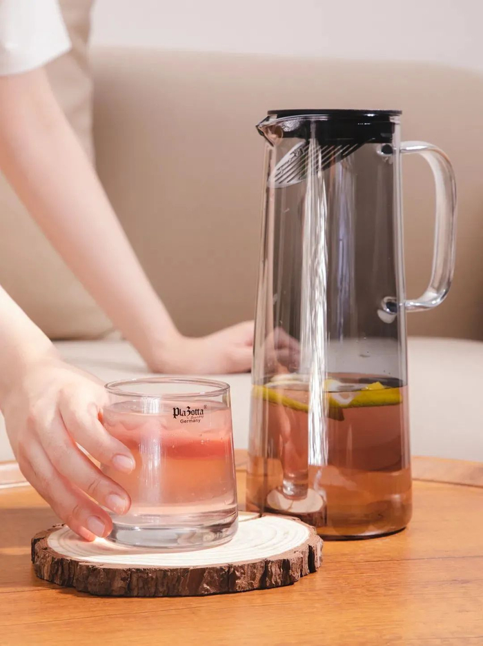 plazotta冷水壶套装用的是高硼硅玻璃材质,拿起来很轻便,而且耐高温、耐低温~