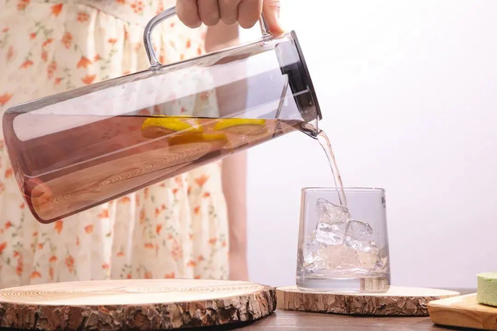 这款冷水壶高硼硅玻璃制成,骤冷骤热后不会炸裂,耐受温度在-30℃到180℃,可以放心使用。