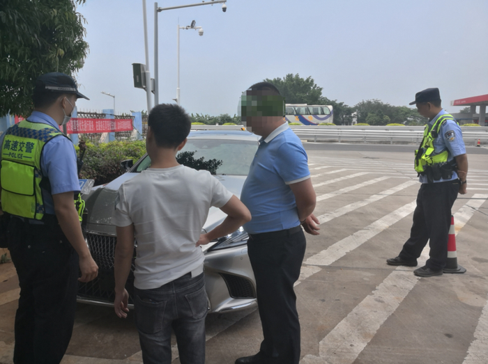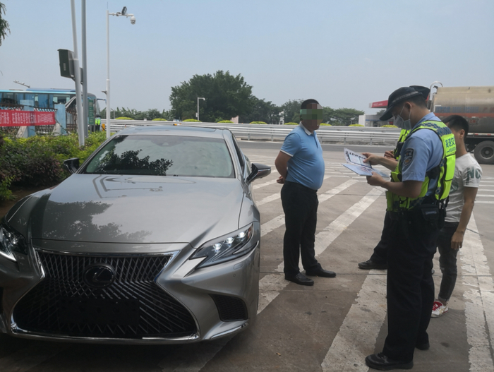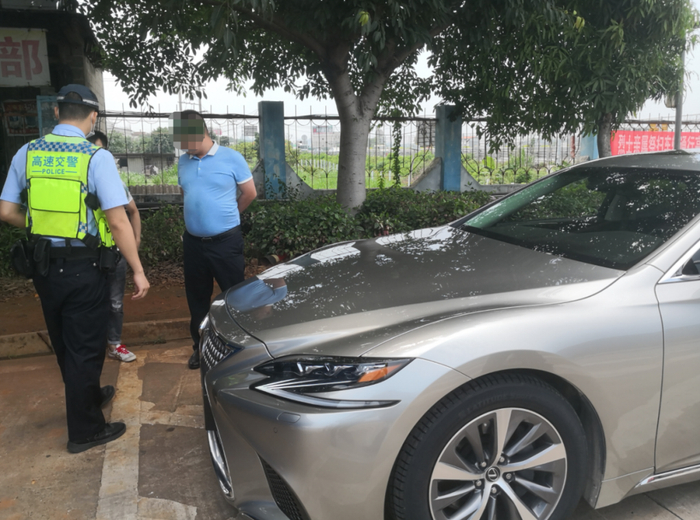 6月29日16时多,广西壮族自治区公安厅交警总队高速公路管理支队十四大队在南宁往玉林方向贵港服务区设点检查车辆时,发现有一辆没有悬挂号牌的雷克萨斯车辆驶入服务区。