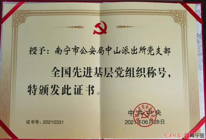 ●南宁市公安局中山派出所党支部获全国先进基层党组织荣誉