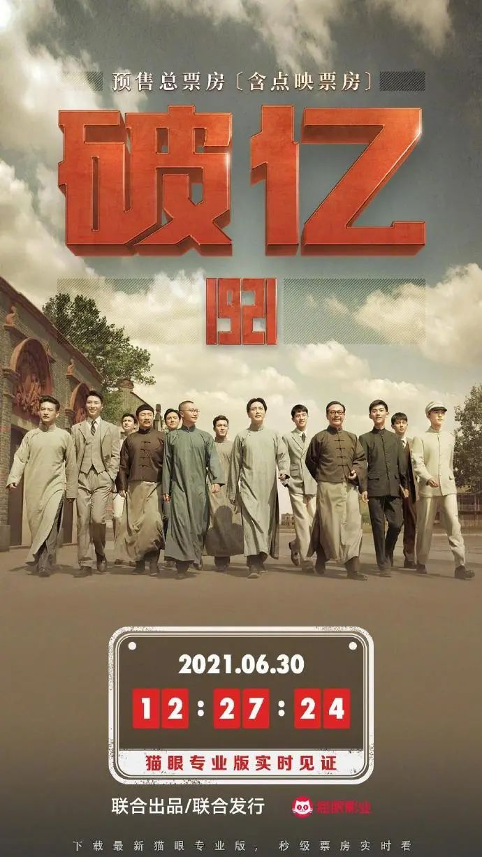据猫眼专业版,6月30日12:27:24,电影《1921》预售总票房(含点映)破亿。影片将于7月1日正式上映。(新浪电影)
