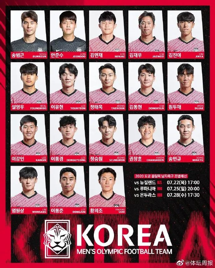 6月30日,韩国国奥队公布了此次征战东京奥运会的18人大名单,瓦伦小将李刚仁在列,金玟哉、权昶勋与黄义助作为超龄球员入选。有国内媒体表示,如果参加东京奥运会,金玟哉将无法参加中超首阶段剩余赛事。(体坛周报)