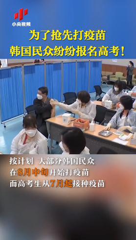 按照计划,大部分韩国民众在8月中旬开始打疫苗,而高考生从7月起陆续接种疫苗,因此不少民众打起了“高考疫苗”的主意。日前高考开始报名,25岁以上报名者约占一半,人数接近往年两倍,其中不乏四五十岁的民众。(小央视频)