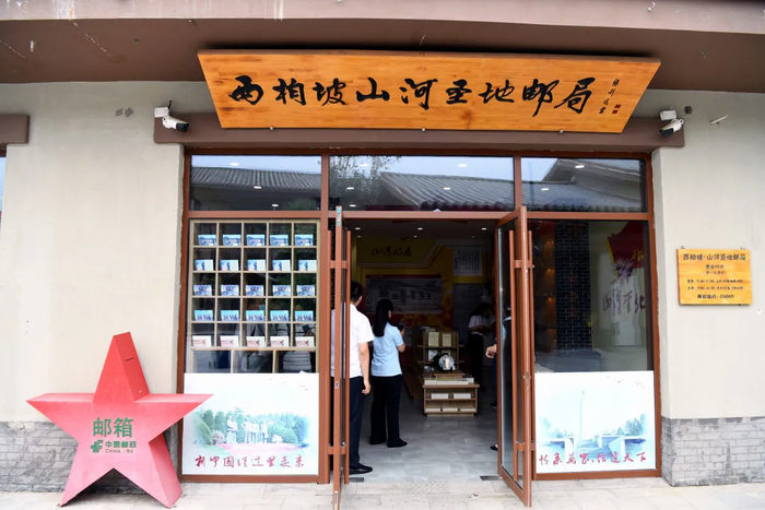 2019年,全功能的电子化邮政支局——山河圣地邮局在西柏坡建成,一件件红色题材创作而成的邮品向人们诉说着那段光辉历史。