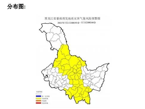 黑龙江省自然资源厅和黑龙江省气象局继续联合发布黄色地质灾害气象风险预警:受强降水影响,预计7月1日8时45分至7月3日8 时00分,黑河、伊春、齐齐哈尔北部、绥化北部、哈尔滨东部、牡丹江、鸡西西部发生地质灾害气象风险较高(黄色预警),请注意防范强降水引发的崩塌、滑坡、泥石流等地质灾害,做好监测预警和转移避险等工作。
