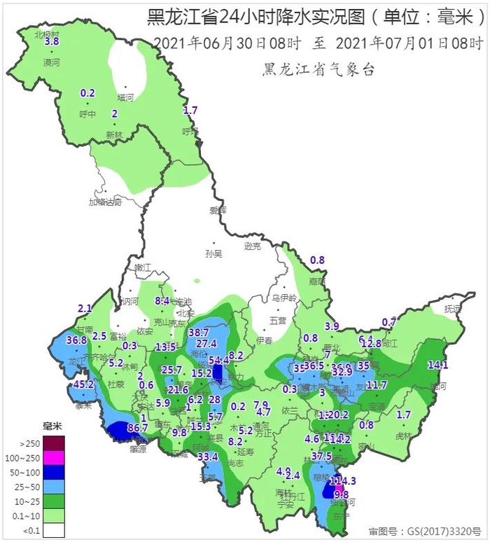 黑龙江省气象台2021年7月1日17时发布1日夜间至4日白天全省天气预报: