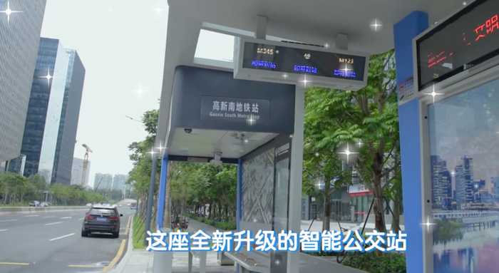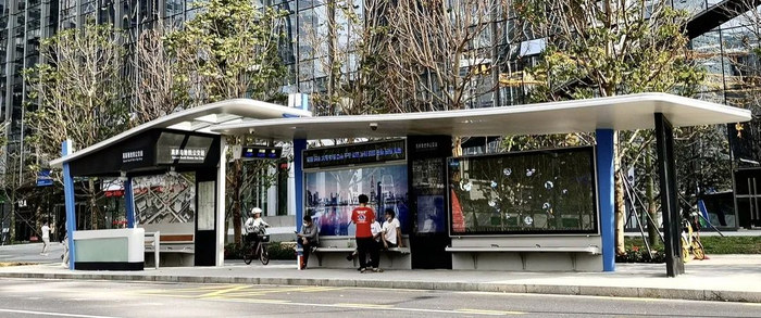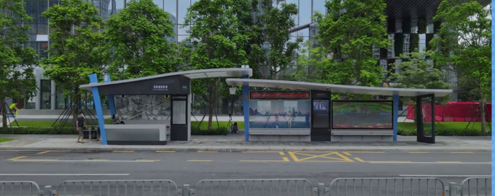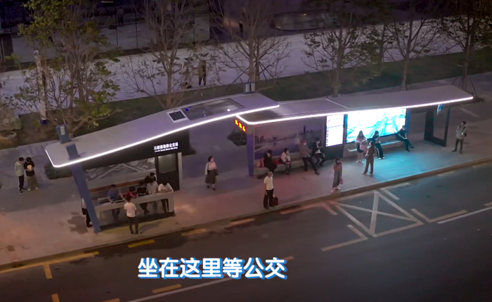 先来看一下新一代智能公交站亭吧