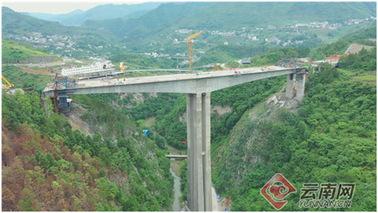 近日,镇赫(云南镇雄至贵州赫章)高速公路云南段建设重点控制性工程——位于镇雄县中屯镇境内的翟底河大桥成功合龙。中铁二十四局的建设者们用这一特殊礼物,向建党一百周年献礼。镇赫高速公路云南段总长11.09公里,是省际高速公路“宜宾至六盘水高速公路”的重要路段,也是云南省东北部片区及贵州西北部片区通向川南最为便捷的通道。