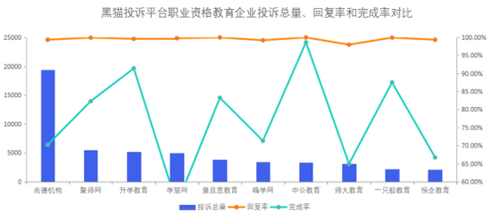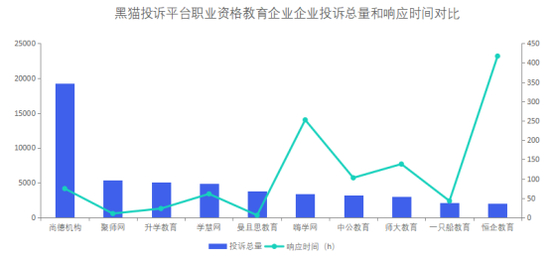 黑猫投诉职业资格教育企业投诉数据对比:恒企教育和嗨学网响应速度较慢