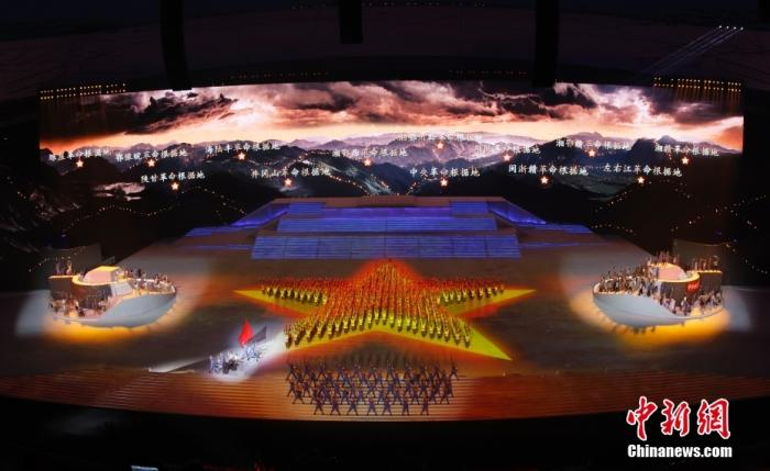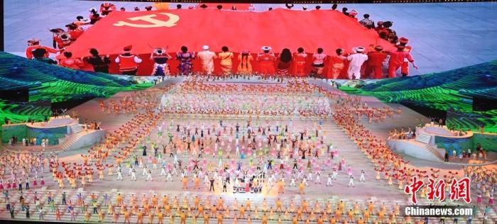 6月28日晚,庆祝中国共产党成立100周年文艺演出《伟大征程》在国家体育场盛大举行。 中新社记者 韩海丹 摄