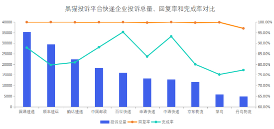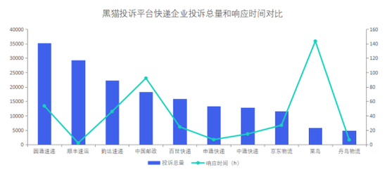 黑猫投诉快递企业投诉数据对比:菜鸟响应速度较慢