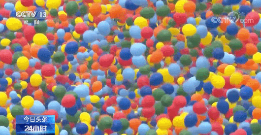 和平鸽放飞的90秒后,就是气球放飞。据介绍,这10万只气球的尺寸有统一要求。