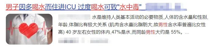 可是,你知道吗?水也不能喝太多!曾有报道称,某男子因一天内过量饮水导致水中毒住进了ICU。