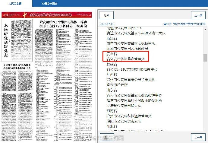 《人民公安报》7月2日刊文《公安部给91个集体记集体一等功 授予(追授)93名同志二级英模》: