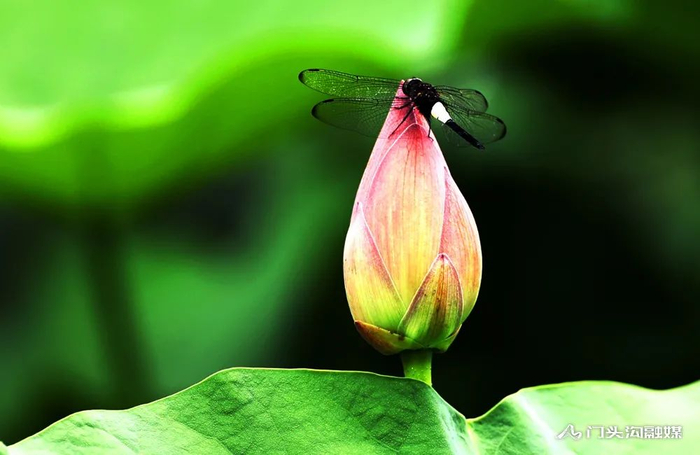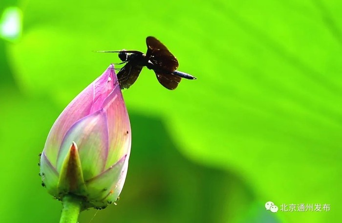 蜻蜓站在小荷上一动不动,勾勒出一幅诗意画面。