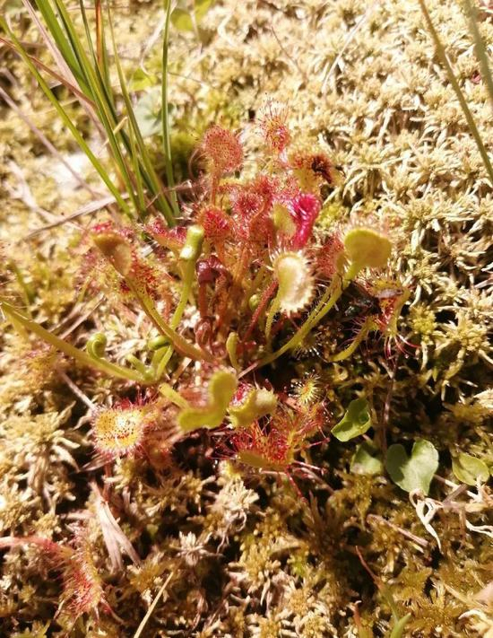 近日,重庆五里坡国家级自然保护区首次发现一种能捕食昆虫的植物——圆叶茅膏菜,在科研人员观测的30分钟内,苍蝇、蛾类、蜻蜓等昆虫纷纷落入其精心布置的红色陷阱中,难以挣脱,成为其“口”中餐。