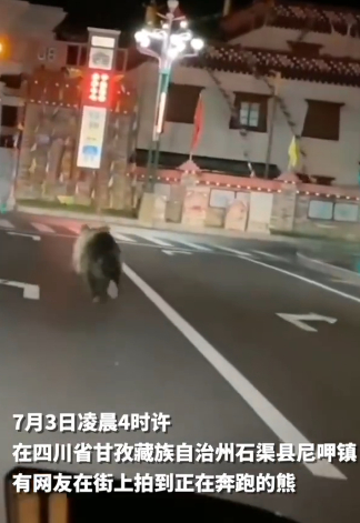 7月3日凌晨4时许,在四川省甘孜藏族自治州石渠县尼呷镇,有网友在街上拍到正在奔跑的熊。记者从石渠县了解到,石渠县尼呷镇已采取安全防范措施,确保当地居民安全。