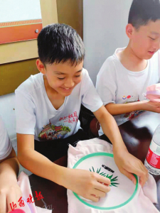 老师先耐心讲解并分步演示了苏绣最基础的针法,再让大家在团扇上描好图样,最后挑选喜爱的丝线开始正式刺绣。孩子们在老师的指导下,用纹针绣好枝条,再用齐针配上绿叶……短短的一个多小时里,每个人都充满了专注与耐心。通过活动,不仅能近距离地体验经典,提升品位,更能传承中国传统文化,还能激发大家的动手、动脑和创意能力!