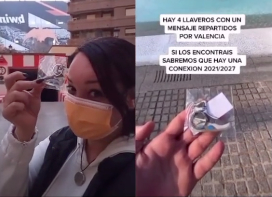 ▲热心网友(左)晒出其找到的哈维尔放置的钥匙链。截图自TikTok