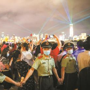 昨天22时36分,璀璨光影定格在黄浦江两岸,以“永远跟党走”为主题的庆祝中国共产党成立100周年光影秀画上圆满句号。外滩江堤上,一些市民游客仍驻足停留,抓住最后的机会,纷纷拿起手机拍下眼前这场科技感十足的盛景。