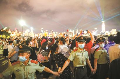 为保障安全组成的“人墙”、雨中维持秩序的民警背影……这些情景,和闪耀浦江两岸的璀璨灯光一起,成为市民游客照片中的主角、直播中的镜头,展现出上海这座大都市的别样光彩。