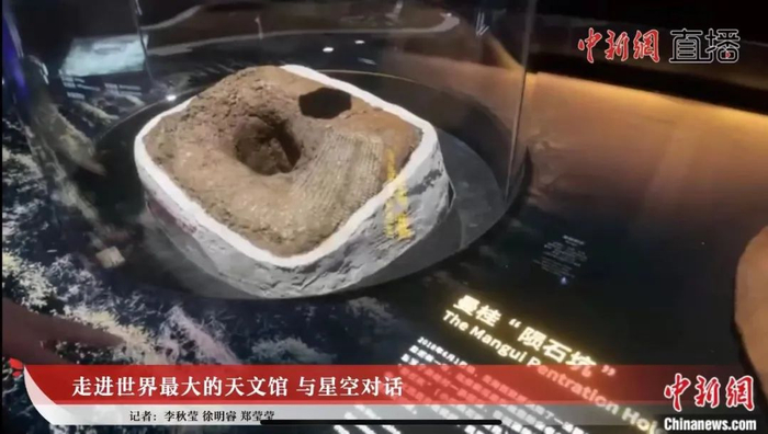 2018年6月1日晚,云南的西双版纳降了一场陨石雨,数百块陨石散落各地。其中最大的一块在地面形成了这个陨石坑,直径13厘米、深25厘米。这也是上海科技馆在国内首次完整回收到陨石坑。