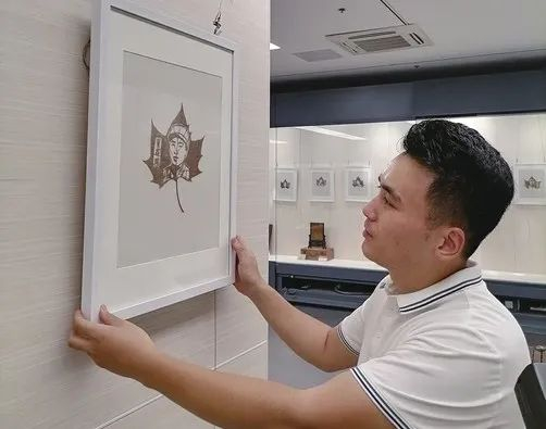 聊城小伙树叶上雕刻百位英模形象