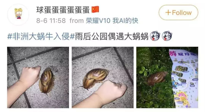 可有人却觉得它很萌,蹲在路边逗它玩,甚至还有老师觉得“机会难得”,赶紧布置观察蜗牛的作业。但有人却因为摸了摸这种大蜗牛,导致发烧到40度。