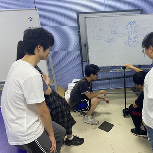图说:团队正调试拐杖 来源/采访对象供图(下同)
