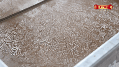 经过6次精细研磨后,在密封的环境中高温蒸煮。然后就进入了腐竹成型的关键环节--提竹。