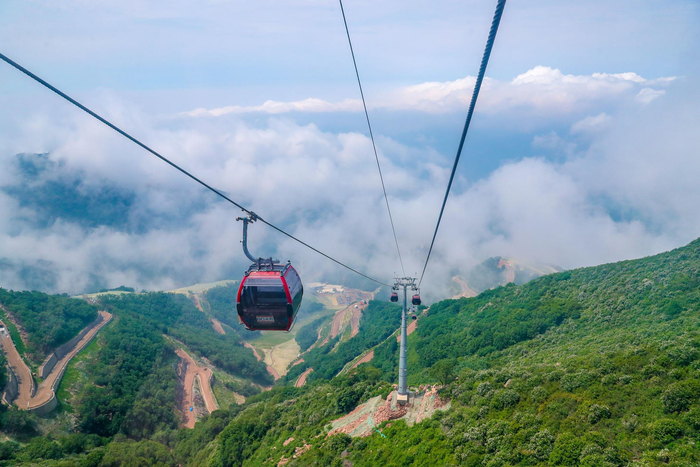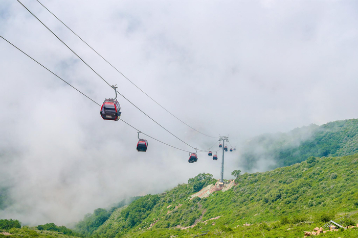 乘缆车进入海拔2198米的小海陀山顶,这里也是高山滑雪中心的出发平台。一眼望去,绿色的草甸与原有植被融为一体,草甸上独有的红色胭脂花随风摇曳,美不胜收。